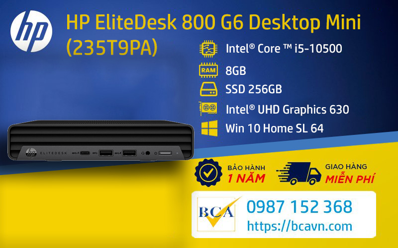 Với hơn 10 năm phân phối các sản phẩm HP đến khách hàng trên toàn quốc, BCA là đại lý phân phối chính thức máy bộ HP EliteDesk 800 G6 Desktop Mini (235T9PA) tại TPHCM